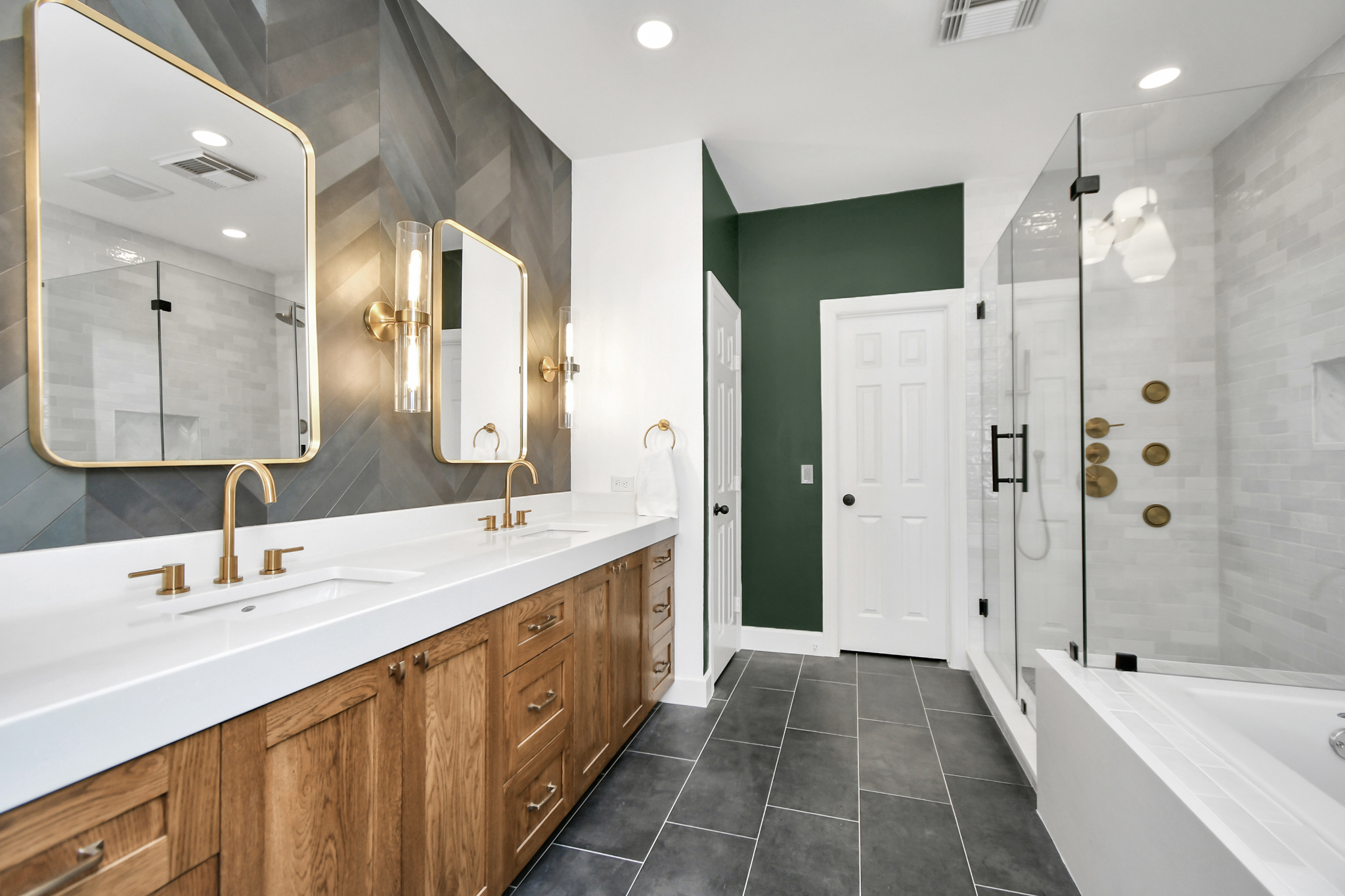 Inspired by a desire for a “dark and moody” ambiance, our client’s bathroom upgrade became a captivating fusion of rich tones and luxurious textures, meticulously orchestrated to create a place of relaxation.