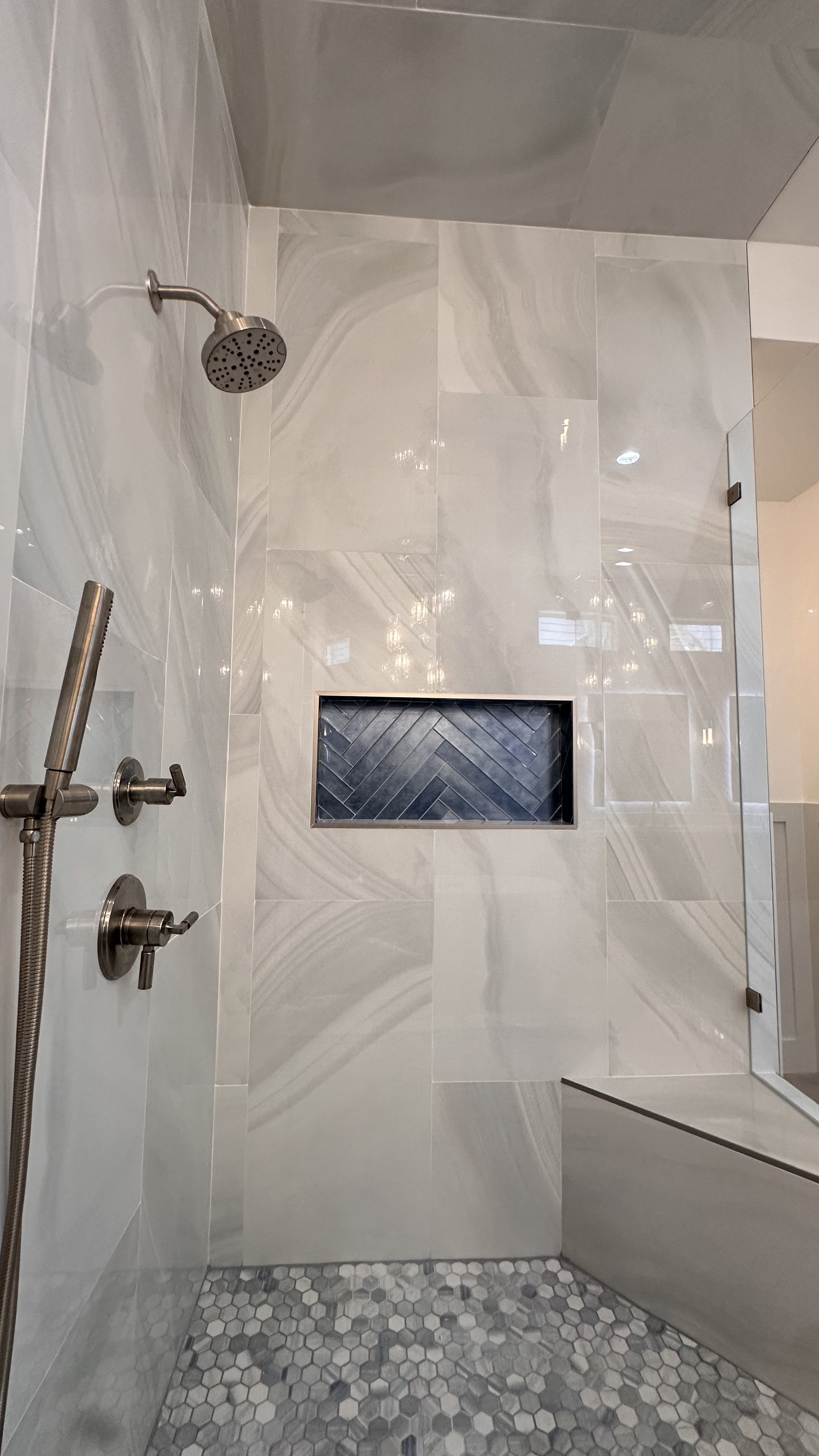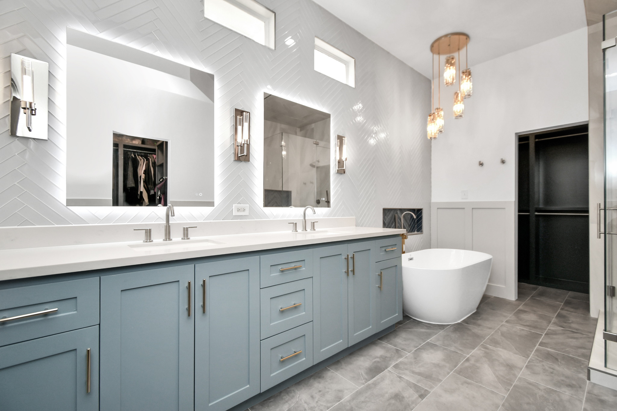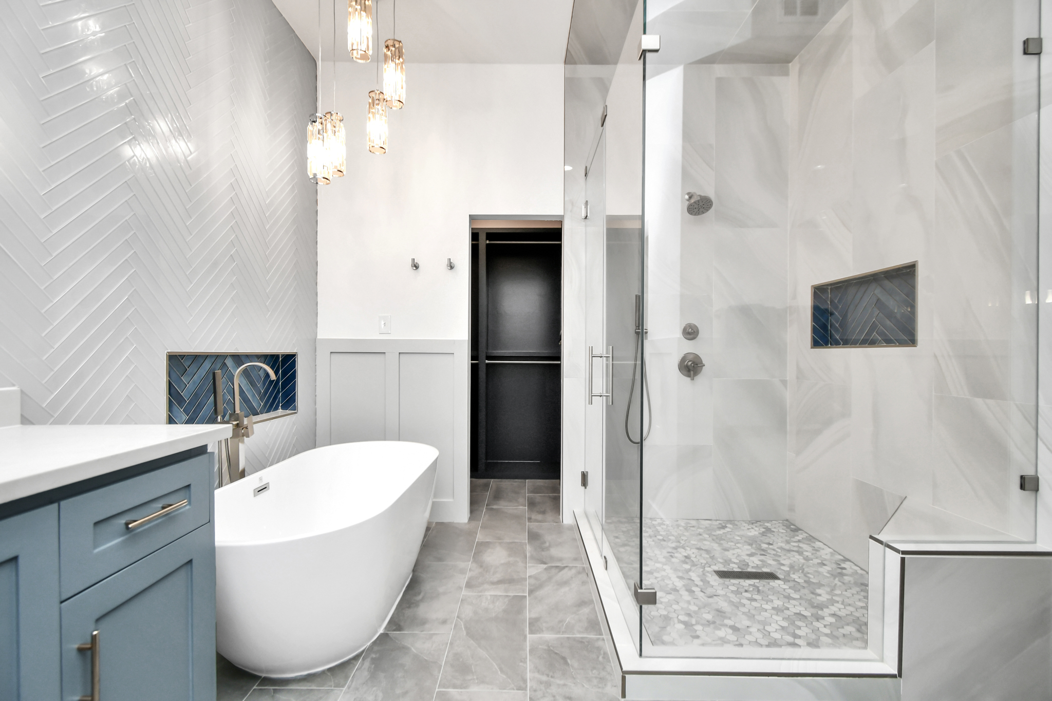 This client envisioned infusing her favorite colors of blue and grey into her new bathroom. The goal was to make it look more spacious and bright. Mission accomplished with a bathroom layout change!